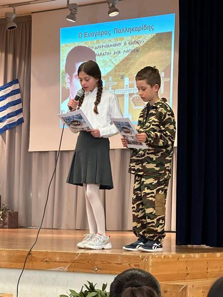 Πραγματοποιήθηκε στις 31 Μαρτίου 2026 , η εκδήλωση τιμής και μνήμης της Εθνικης Επετείου της 1ης Απριλίου 1955. Την εκδήλωση παρουσίασαν οι Γ' τάξεις. Τα παιδιά, με τα τραγούδια, τις θεατρικές σκηνές και τις αφηγήσεις, συγκίνησαν τους θεατές και έστειλαν το μήνυμα: