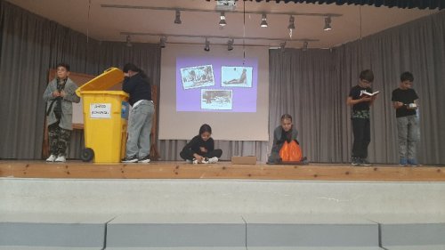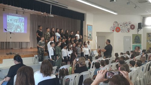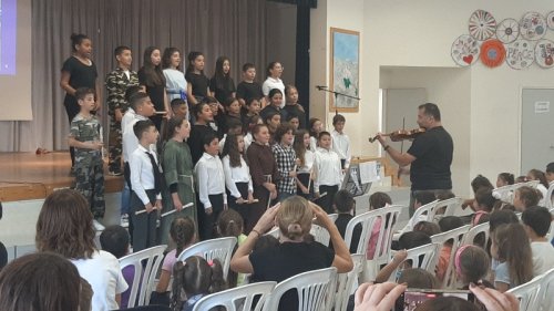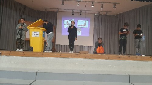 Το κοινό, τα παιδιά του σχολείου μας, τα παιδιά από το γειτονικό μας νηπιαγωγείο και οι γονείς, παρακολούθησαν με ενδιαφέρον και συγκίνηση την τελετή και χειροκρότησαν ένθερμα τα παιδιά της Ε' τάξης για την αξιόλογη παρουσία τους.