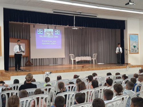 Τα παιδιά της Ε' τάξης παρουσίασαν μέσα από ποικιλία δρώμενων, ποιημάτων, τραγουδιών σημαντικά στγιμιότυπα από αυτές της σπουδαίες ιστορικές στιγμές της ελληνικής ιστορίας.