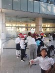 Στο τέλος, τα παιδιά περίμενε μια έκπληξη. Από τα εσωτερικά μπαλκόνια του κτιρίου, ο κόσμος που παρακολουθούσε, έριξε από ψηλά καραμέλες και σοκολάτες, μπαλόνια και γλυκά στα παιδιά.
