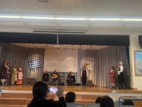 Η εκδήλωση ξεκίνησε με τους μουσικούς της ομάδας να πλημμυρίζουν την αίθουσα με κυπριακά τσιατιστά, ενώ οι μικρότεροι μαθητές μας συμμετείχαν με ενθουσιασμό στο παραδοσιακό παιχνίδι «αυκά - αυκά πουλώ τα».